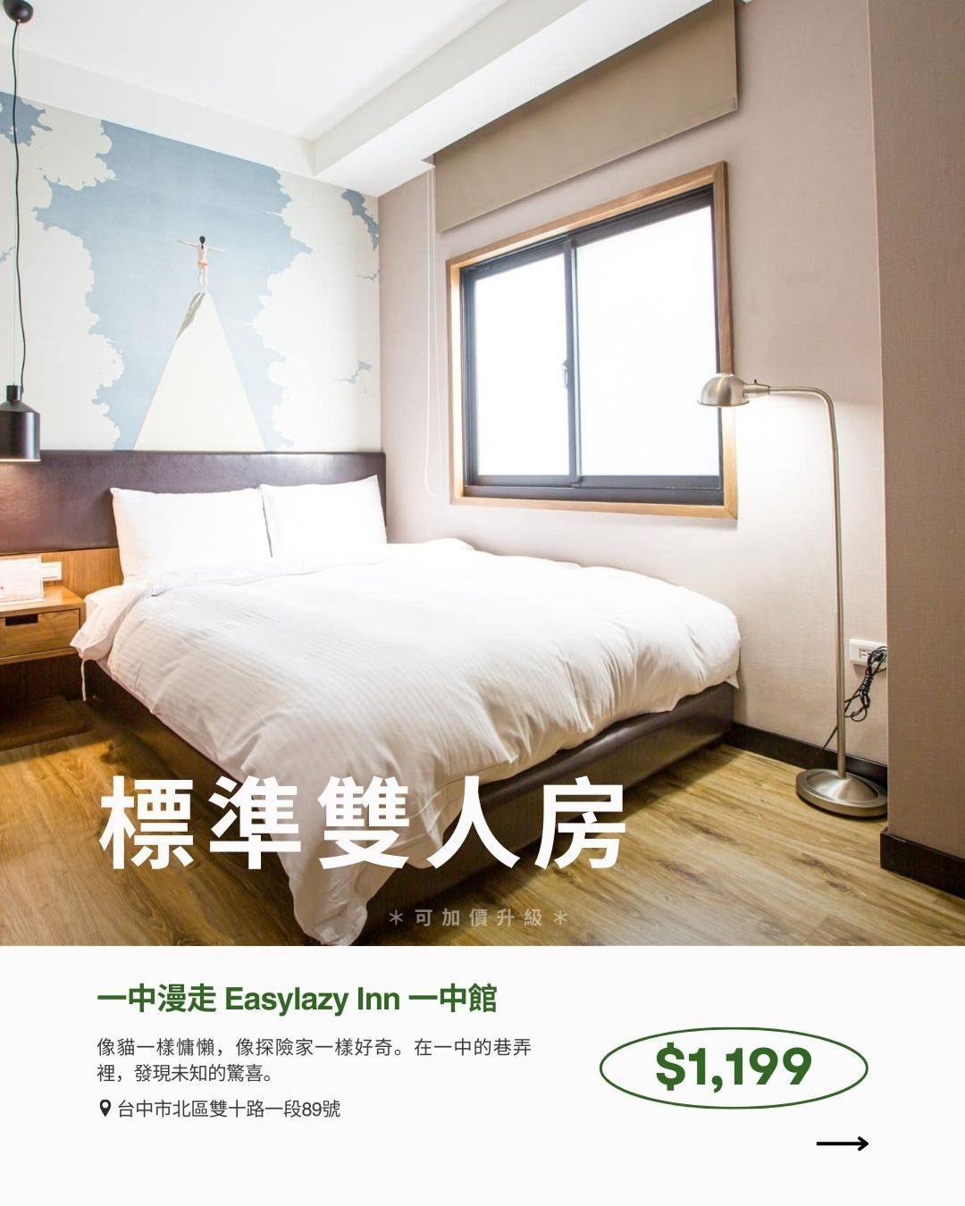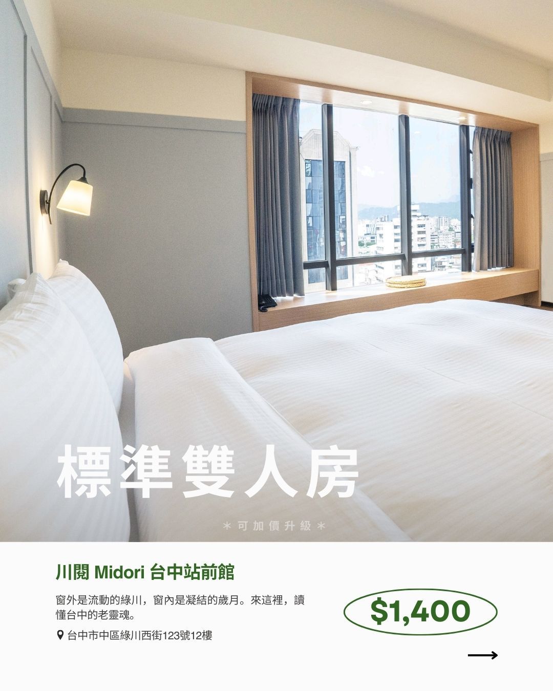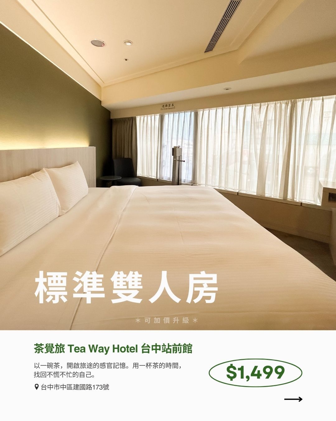 ➃ 各館可透過優惠價格升級房型。(各館房價不同,升級請洽各館)