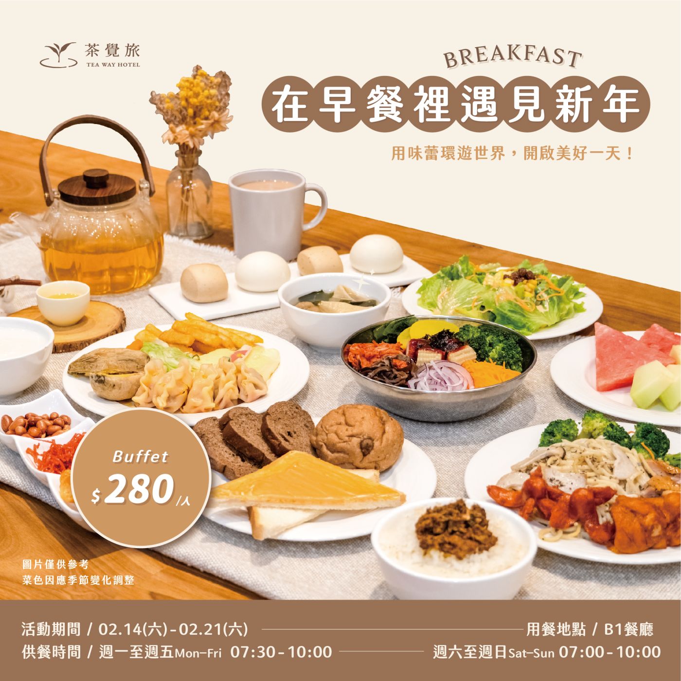2026 春節期間早餐費用將調整為每位 NT$280!