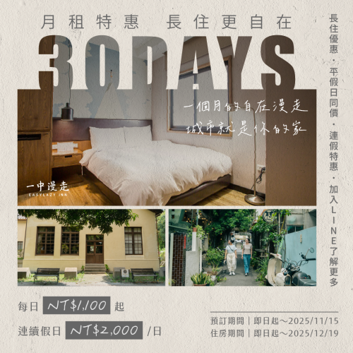 『一個月的自在漫走,城市就是你的家』30天月租特惠,長住更自在!