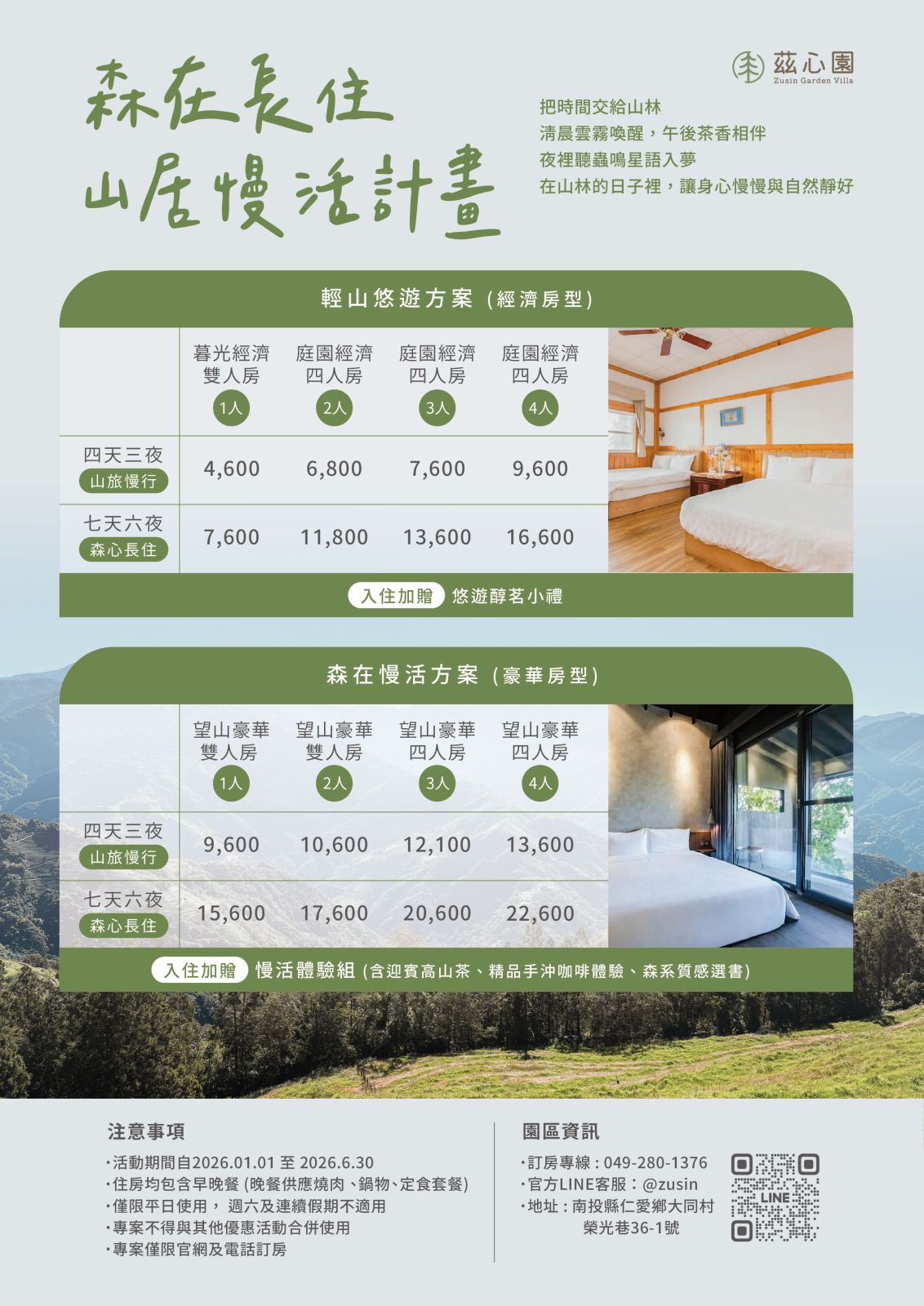 作為在地深耕的清境景觀民宿。我們特別推出三天二夜、四天三夜等的長住方案,打造最高 CP 值的住宿優惠。